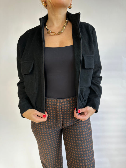 1970s Vintage Marimekko Wool Bomber Jacket in Black