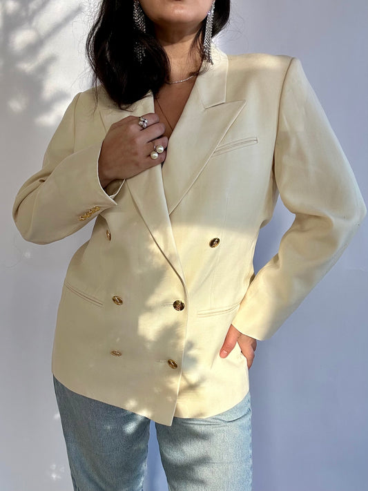 90’s Austin Reed White Wool Blazer with Gold Buttons