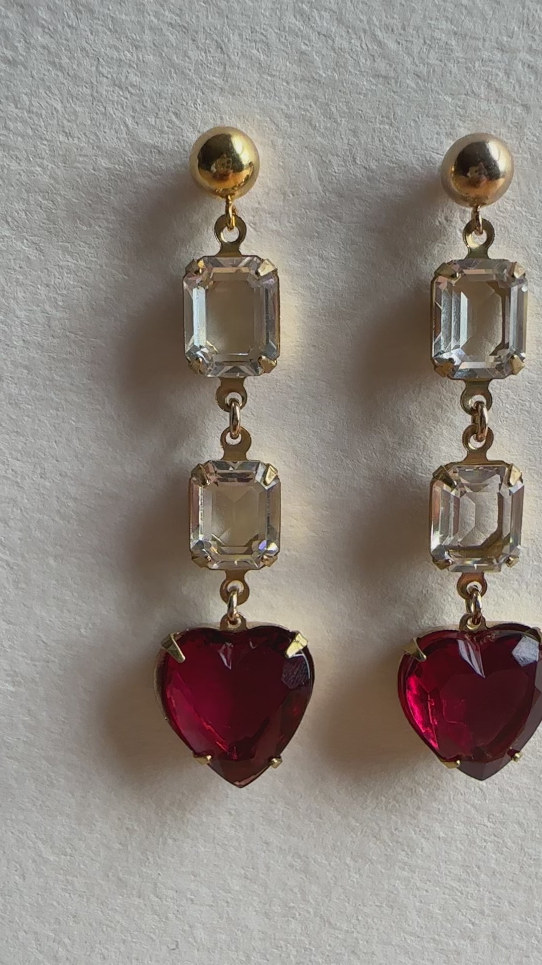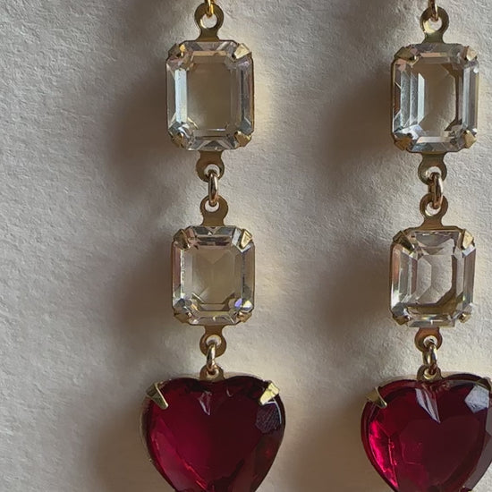These glamorous handmade earrings feature 14k gold-filled studs with vintage glass rhinestones set in brass.