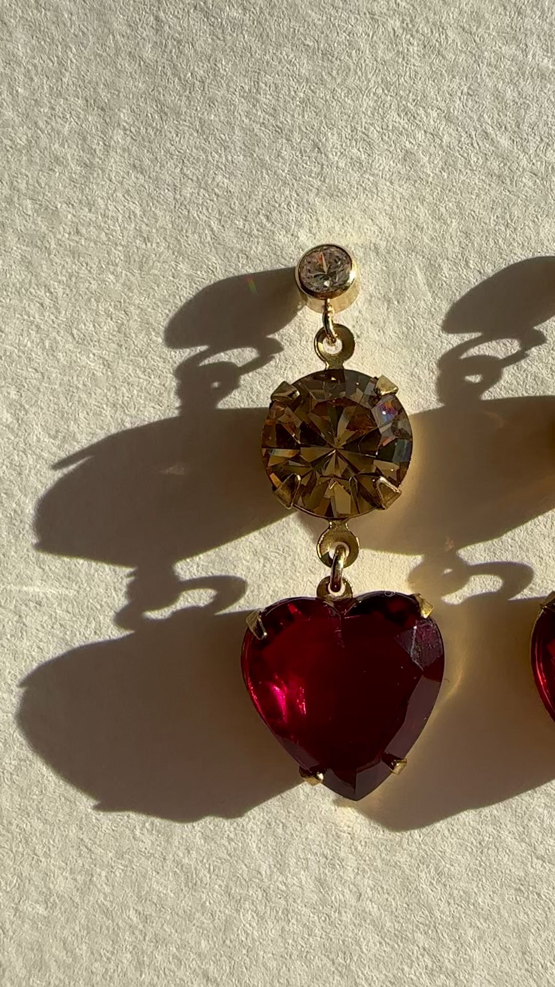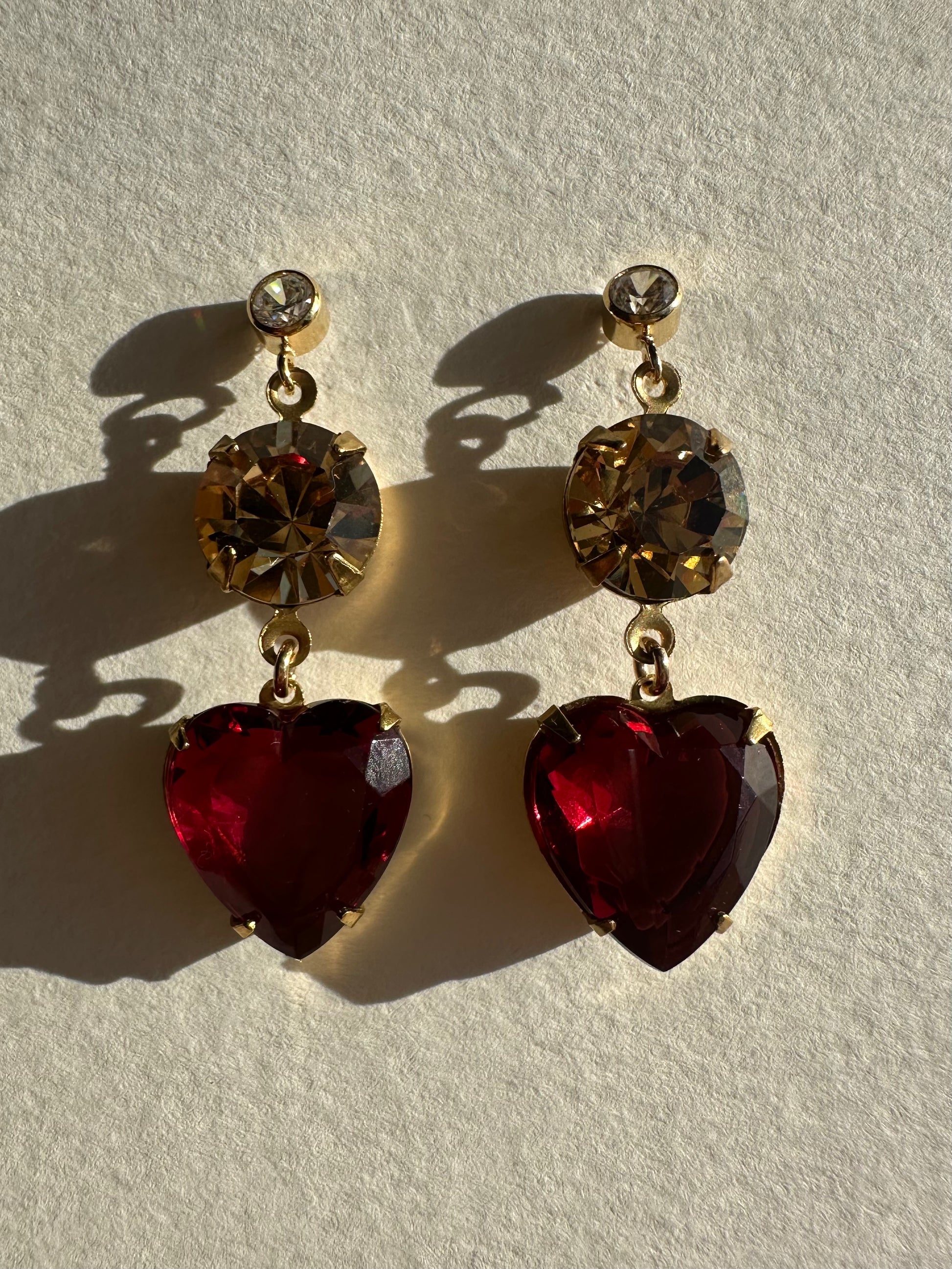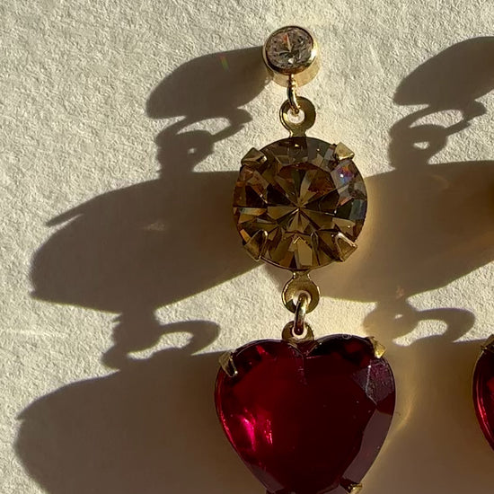 These glamorous handmade earrings feature 14k gold-filled studs with vintage glass rhinestones set in brass.