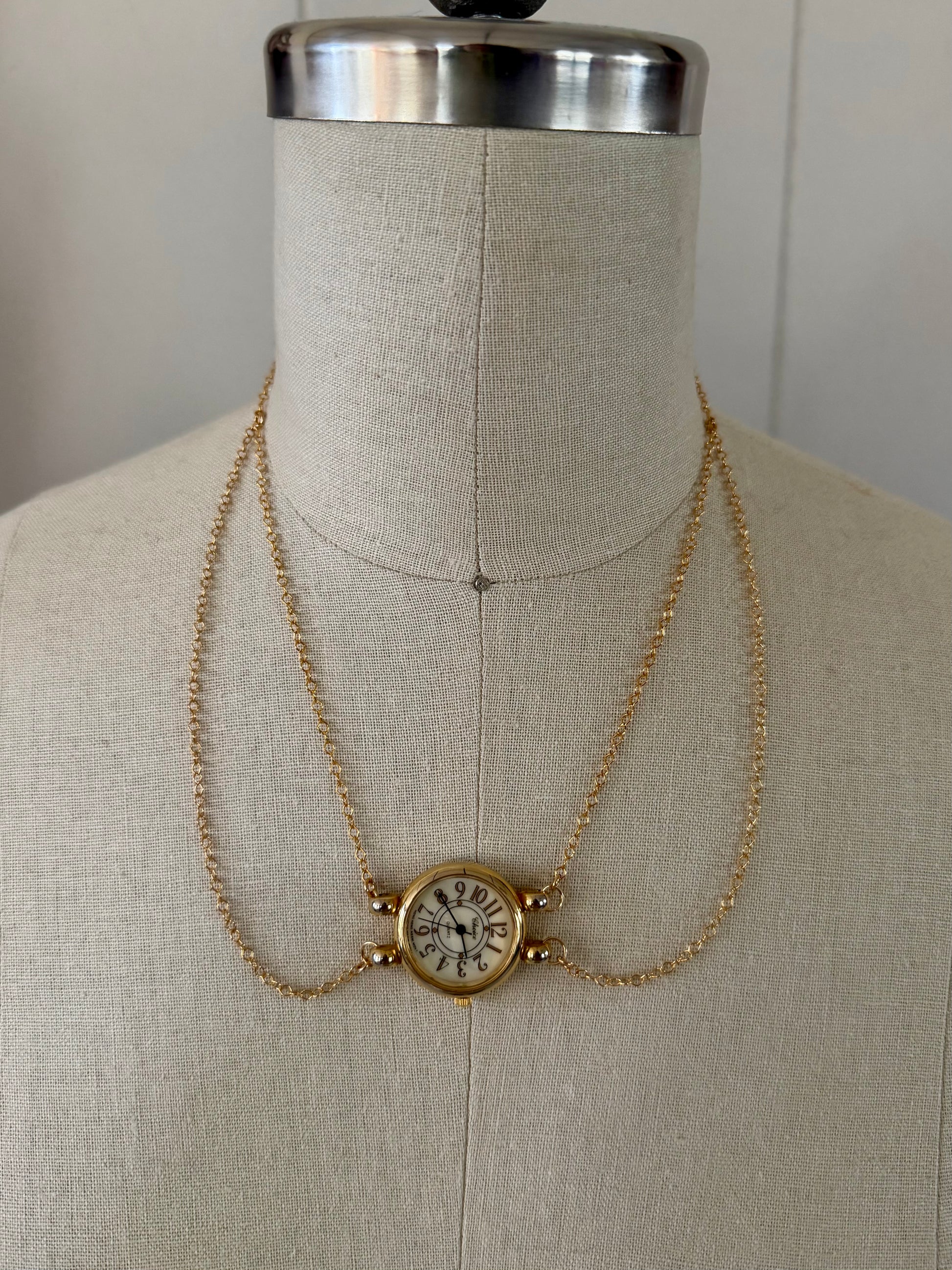 Vintage watch face paired with 14k gold filled chains